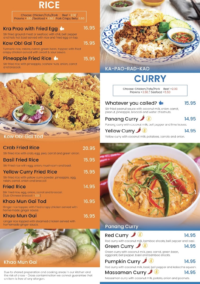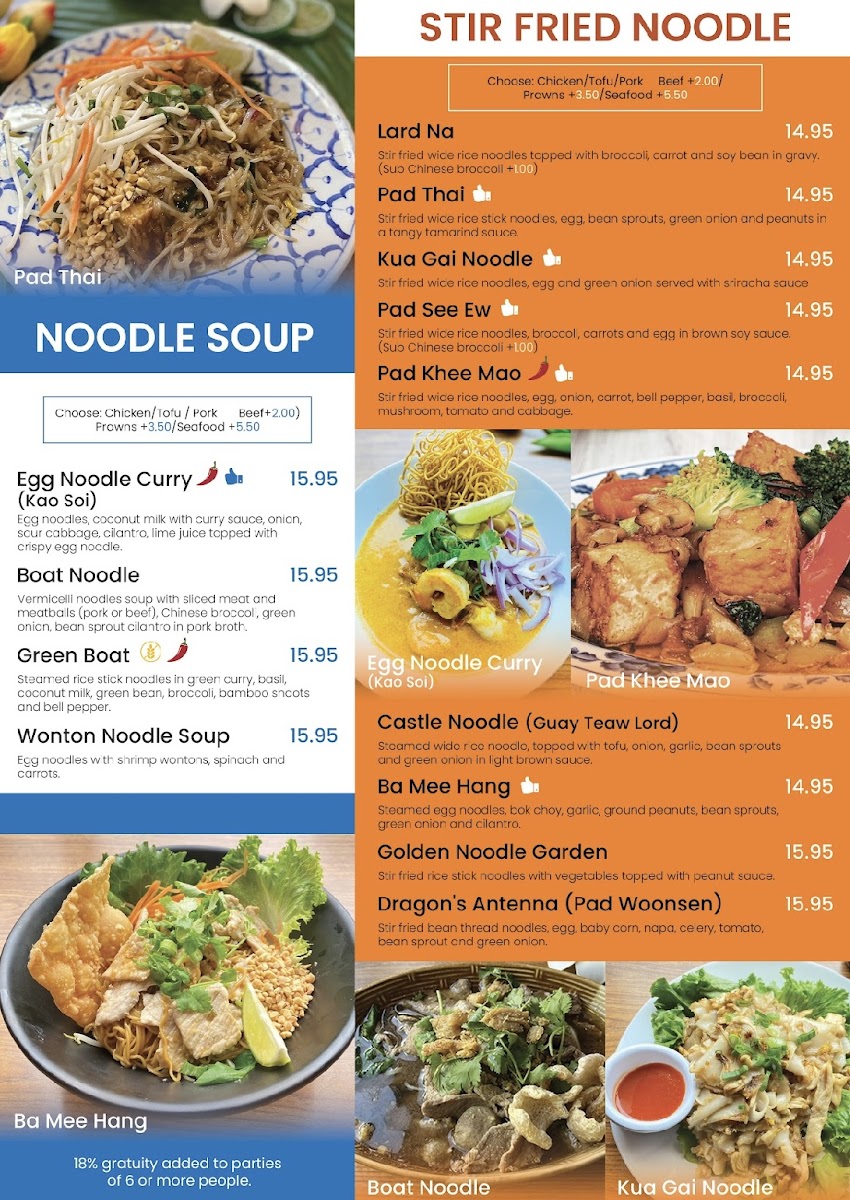 The highlight of any visit to Noodle Boat is the delectable array of culinary creations that await you. From Kra Prao With Fried Egg, a scintillating stir-fry of ground meat or seafood infused with holy basil and chili, to the rich and creamy Egg Noodle Curry (Kao Soi), there’s something to tantalize every palate. The Crab Fried Rice is a standout, featuring succulent chunks of crab that elevate a classic dish to new heights, while the Khao Mun Gai offers a comforting plate of ginger rice topped with steamed chicken and a homemade ginger sauce that will have you dreaming of your next visit.